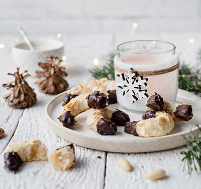 Teig auf wenig Mehl zur Rolle formen und. Gemahlene Mandeln Puderzucker und 2 EL Mehl mischen. Herausnehmen und auf Kuchengittern abkhlen lassen.