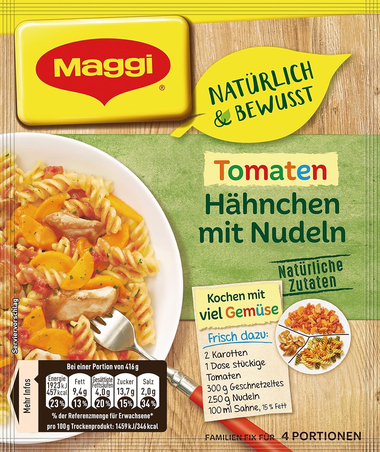Maggi Familien Naturlich Bewusst Tomaten Hahnchen Mit Bunten Nudeln 15x56 G Beutel Amazon De Lebensmittel Getranke