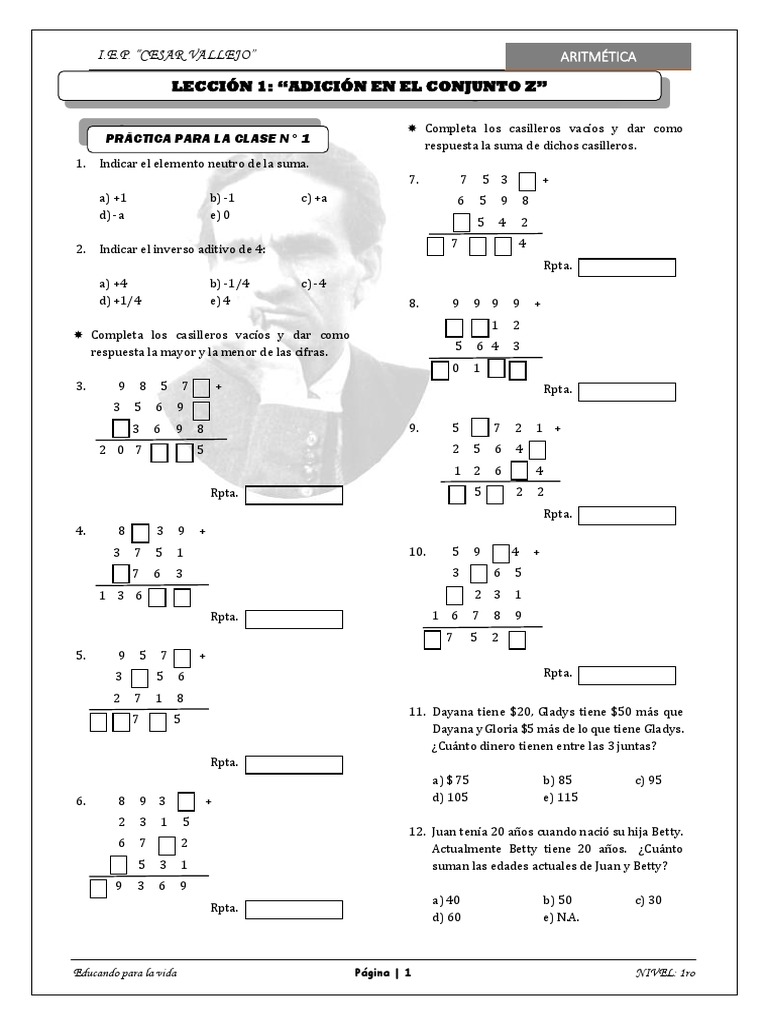 Compendio 1 Aritmetica Primero 2017 Pdf Sustraccion Aritmetica
