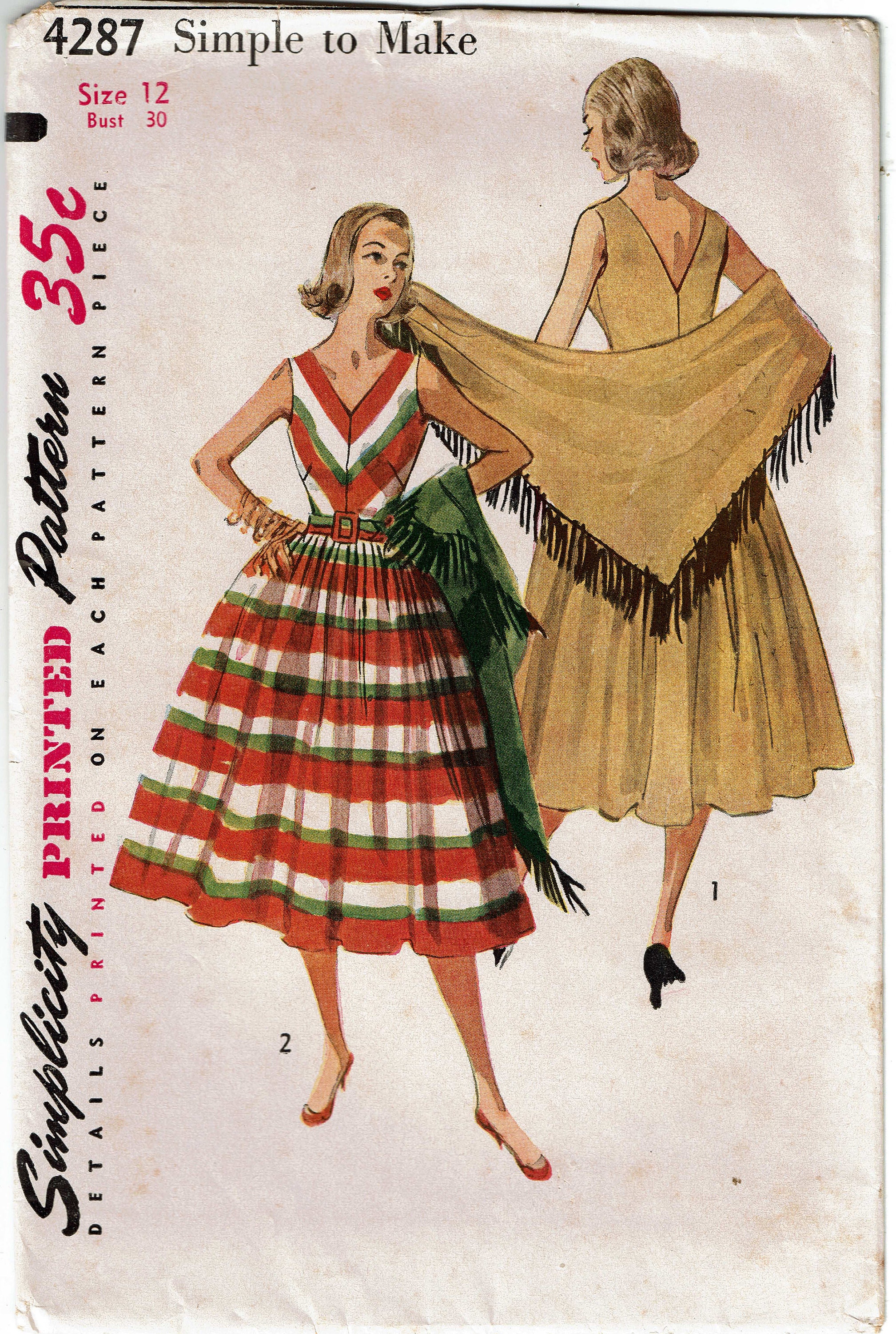 1950s Vintage Simplicity Sewing Pattern 4287 Misses Sun Dress Etsy