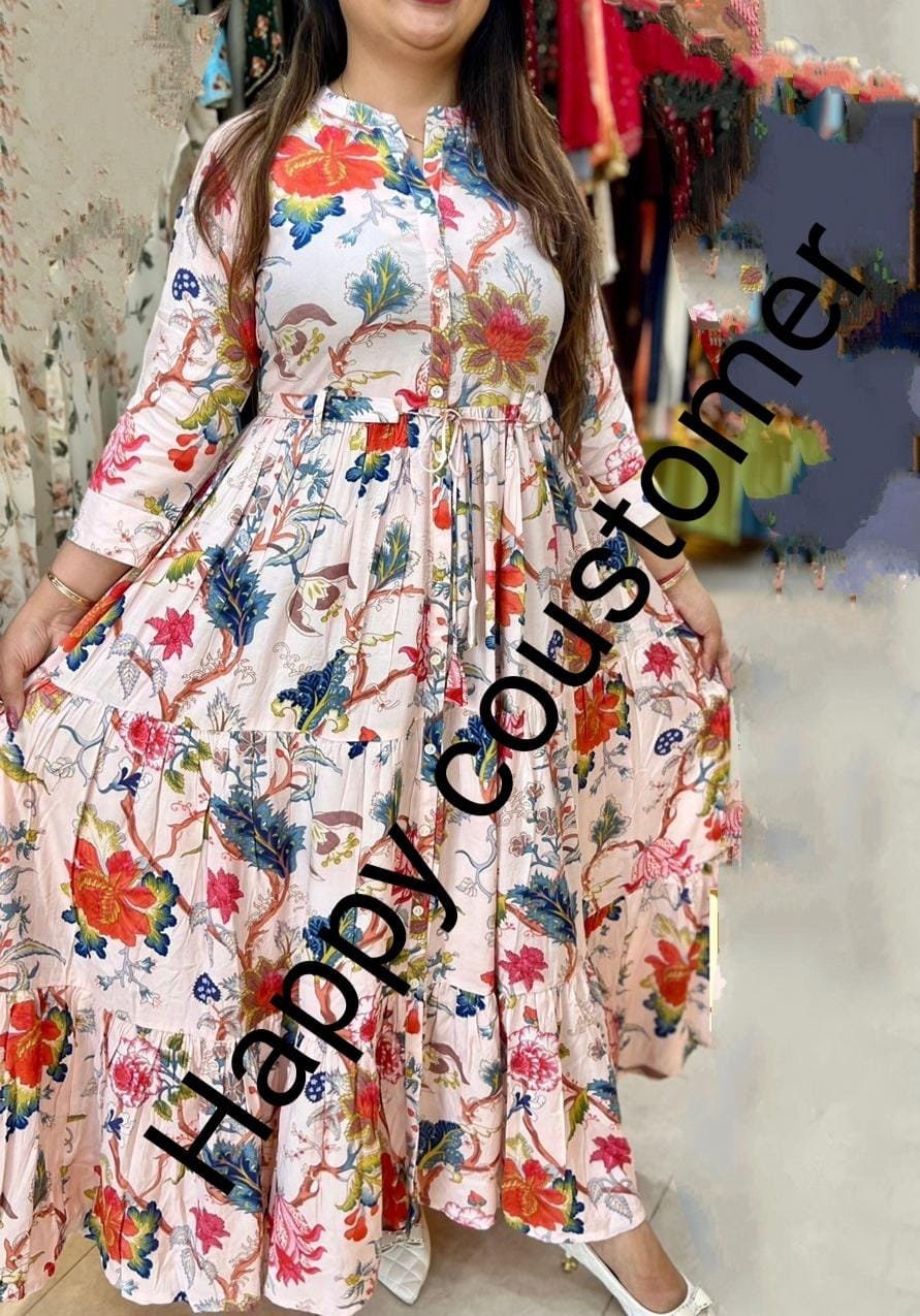 Designer Cotton Anarkali Kurti Long Gown Designer Kurti Set Etsy Israel